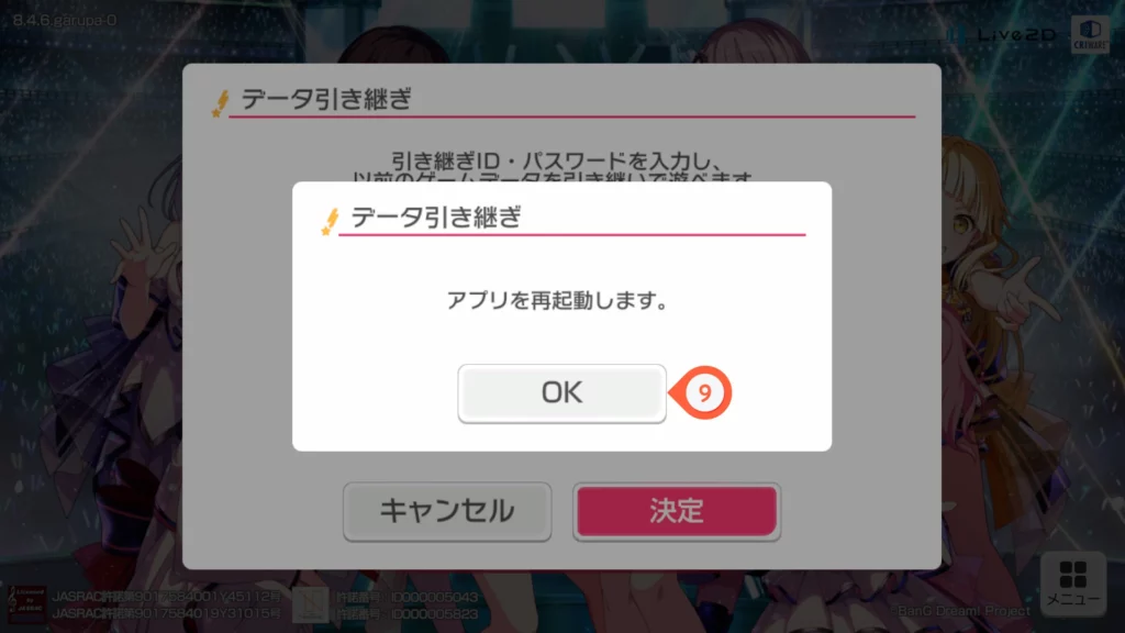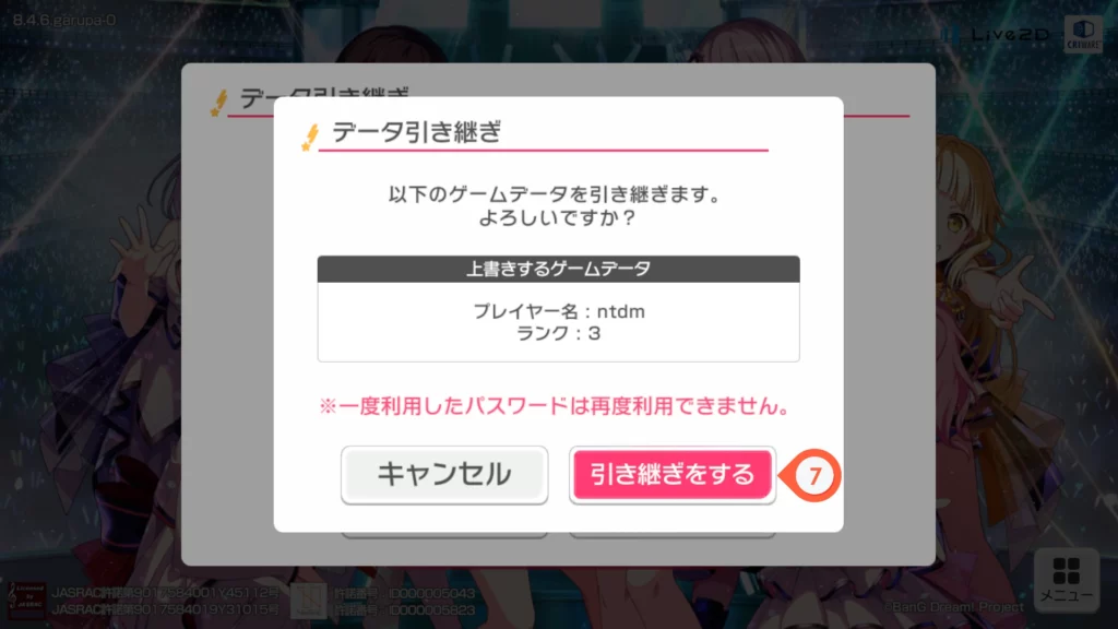7. กดที่ 引き継ぎをする