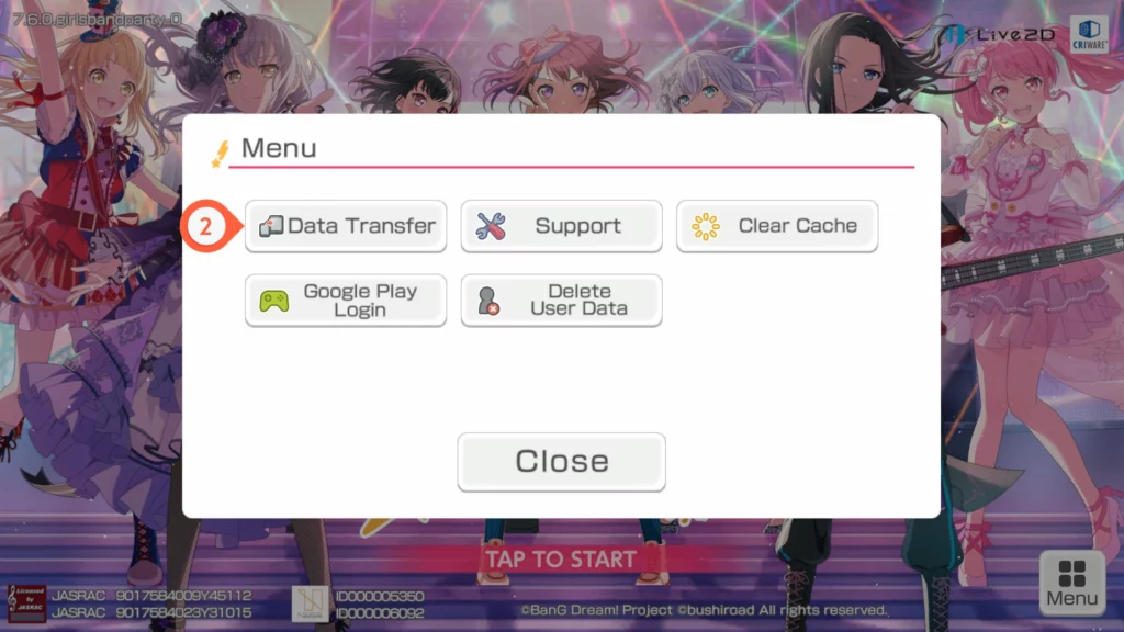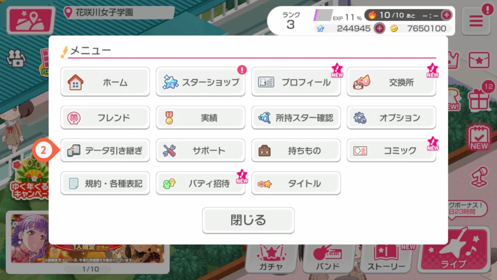 2. กดที่ データ引き継ぎ