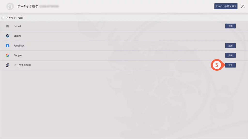1. กดที่ データ引き継ぎ