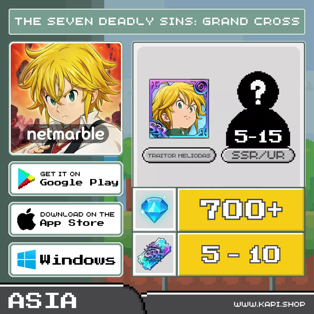 ไอดี The Seven Deadly Sins: Grand Cross (Asia) – 1,000+ Diamonds + Traitor Meliodas + สุ่มตัวละคร SSR/UR 5-15 ตัว